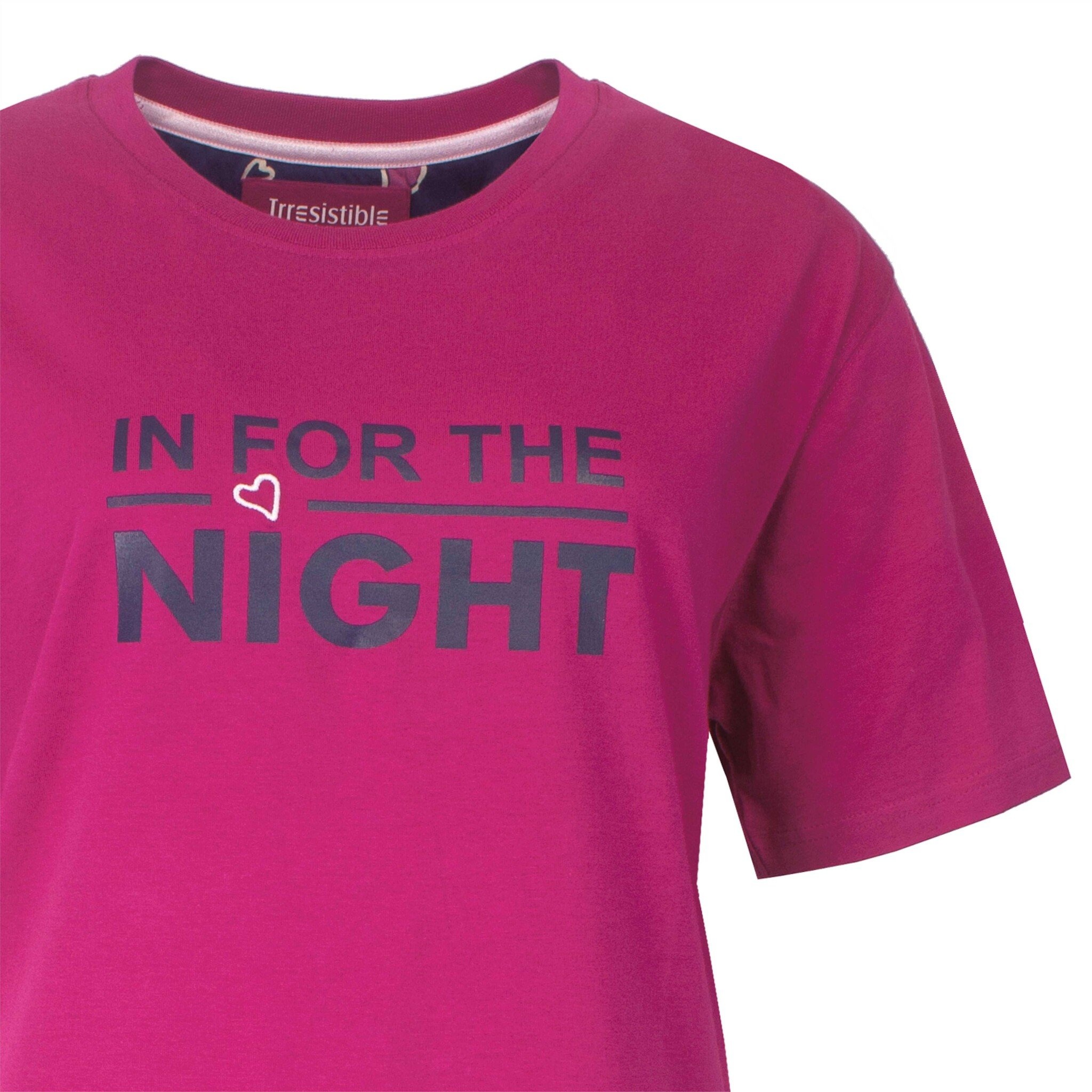 De fuchsia top is stijlvol in z’n eenvoud en heeft een ronde hals met een elastisch boordje voor extra draagcomfort. Een subtiel geborduurd hartje met tekstprint op de borst geeft een speels en vrouwelijk accent. De korte mouwen maken het perfect voor warme nachten of knusse ochtenden.